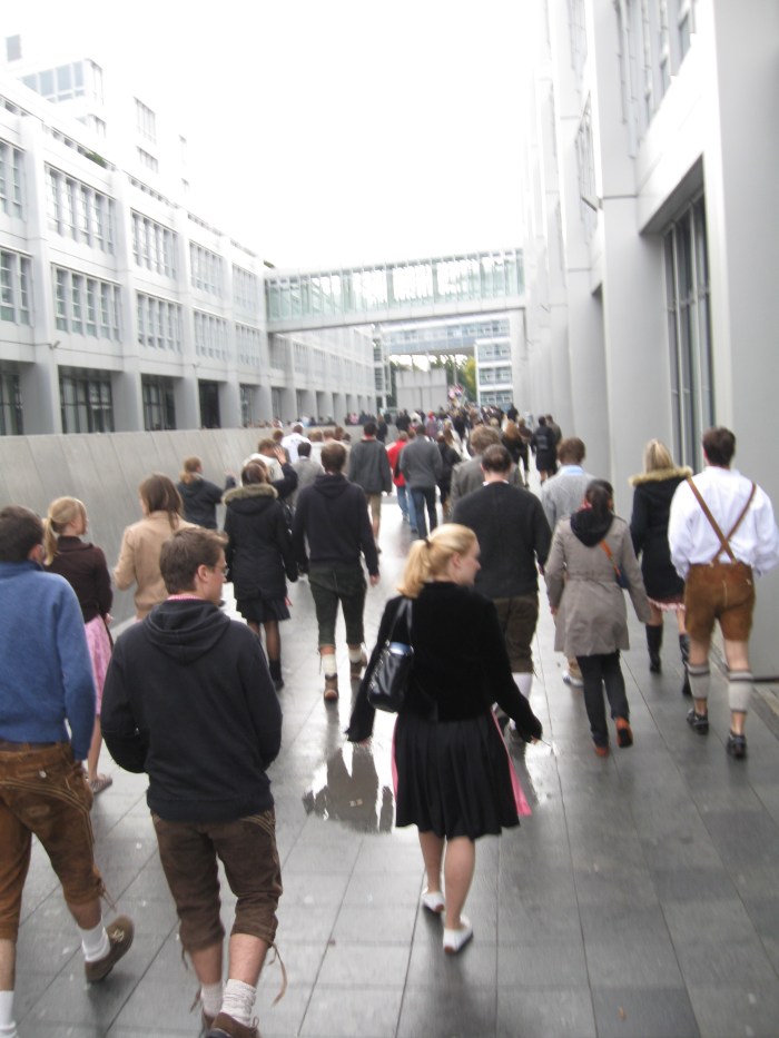 The train from Stuttgart was probably at double its capacity with people lined up in the aisles. I was lucky enough to find a seat in the stairwell, only to have my large bag on top of me for most of the 3 hour ride. I arrived in Munich at about 7pm, and found a tourist info place that got me information on a nearby campground. One tram ride later and I had already met some Americans fresh from Oktoberfest headed to the same place. I took it easy that night after 7 hours of trains and transfers, and ended up meeting a super nice old guy from New Zealand who had a beard so thick it barely moved when he talked. The next day I was up early to make it into a tent. I soon found myself in a crowd of young people, which was eerily similar to World Youth Day in Cologne 4 years ago, but instead of following the crowd to the Pope, I was following a crowd to Beer Heaven.