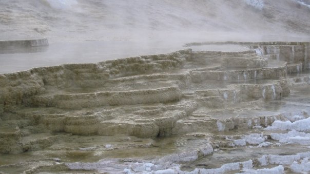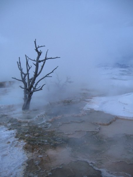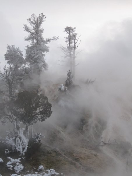 After the hot springs we took a quick walk around Mammoth Hot Springs to check out the terraces. I had never been to Yellowstone in the winter before, and all the extra steam made for some really cool photos.