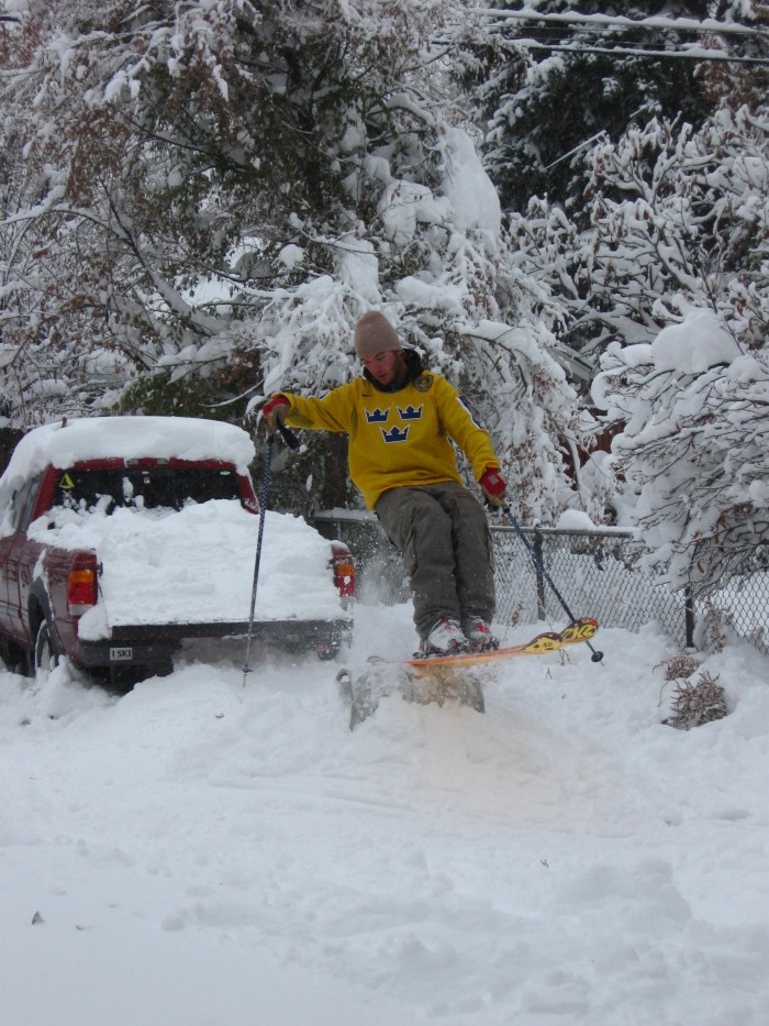 So I made the realization yesterday that I have only left the State of Colorado once since I was in Washington, DC, so the fact that my blog is “Jon Jay’s Travels” really isn’t making much sense these days. In fact, this past weekend, I barely made it out to my backyard to do some skiing, and a few days later I made it to South High School (about half a mile from my house) for some urban skiing with my buddy Jon. Of course, of these two “trips,” I got pictures of the lesser of the two cool things, and that was the keg shell jib in my back yard.