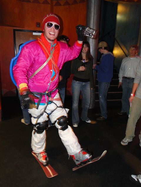 I didn’t think much of it until I called my other brother Zack this past weekend, who, luckily for me, was celebrating his birthday a day late. He told me that he too had seen me in Powder, dressed as Saucer Boy at the Denver premier of “In Deep,” this year’s Powder Magazine Video Award’s Movie of the Year. I was still a little skeptical until I did a search for pictures on the Matchstick Website and found their photo montage of Saucer Boys from around the tour (I didn’t know I was at the Whistler Premier until I found it).