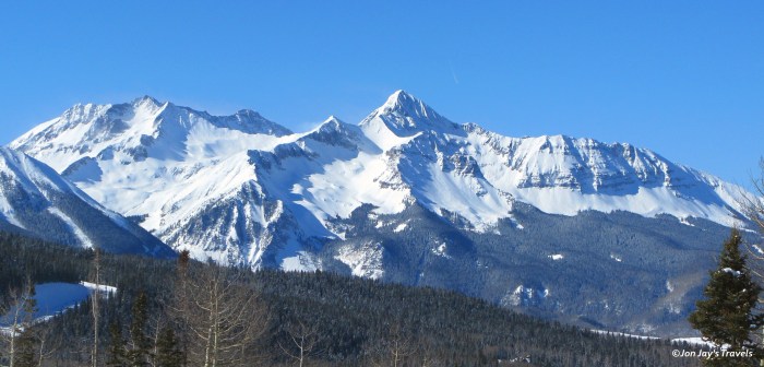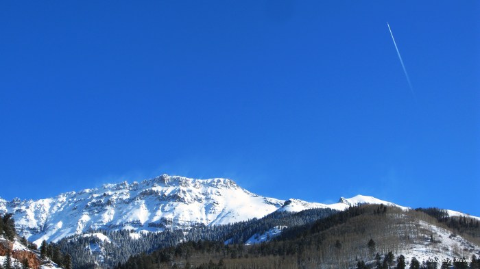 I finally figured out what is wrong with my camera, and will be able to fix it as soon as I can find a micro-screwdriver. Because of the problem, however, I was restricted to taking still photography this past weekend because anything more than a jostle and the camera will not turn on. So, naturally, it gets jostled a bit when I ski with it in my pocket, so I was able to take pictures in Ouray and even a few in Telluride, but by the time I got to the top of Gold Hill Express, my camera was a no-go on one of the best days of the season so far. Luckily, the mountain shots came out pretty nice. Click any picture for a larger version.