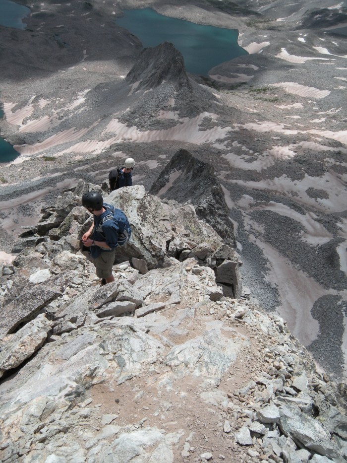 One thing a lot of people don’t realize about this route is that the scramble after the knife edge is loose, steep, exposed, and confusing, as Chris demonstrates here: