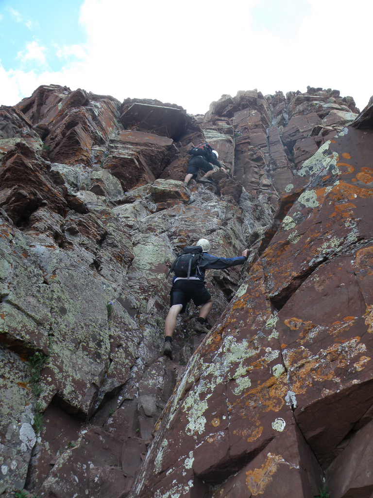 We found the basic northeast ridge route trail, and just barely got past the single class 4 pitch before a thunderstorm moved in that left us under some cliffs for a half hour. We then proceeded to get lost several times, had to deal with loose scree that would slide with the slightest amount of weight, and then out to the Minniehana creek crossing. We were all stoked on the 14 hour day, gave high fives, and drove back to Denver, very happy with what we had accomplished.