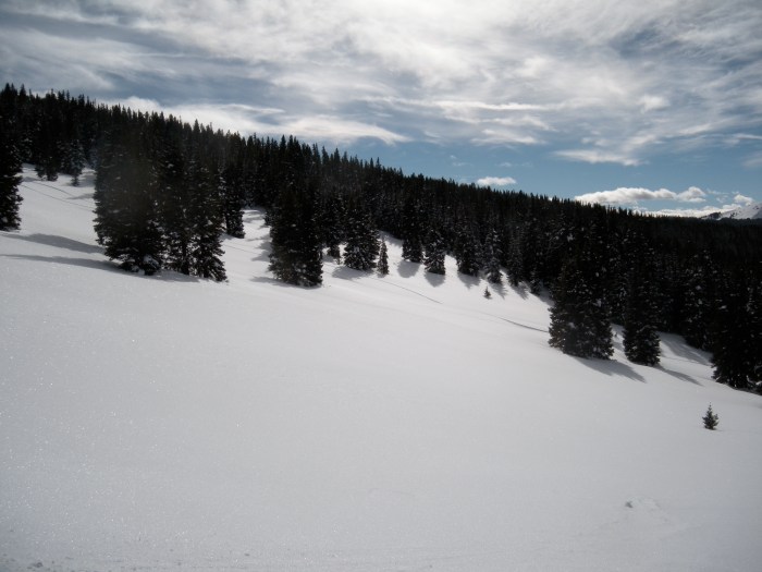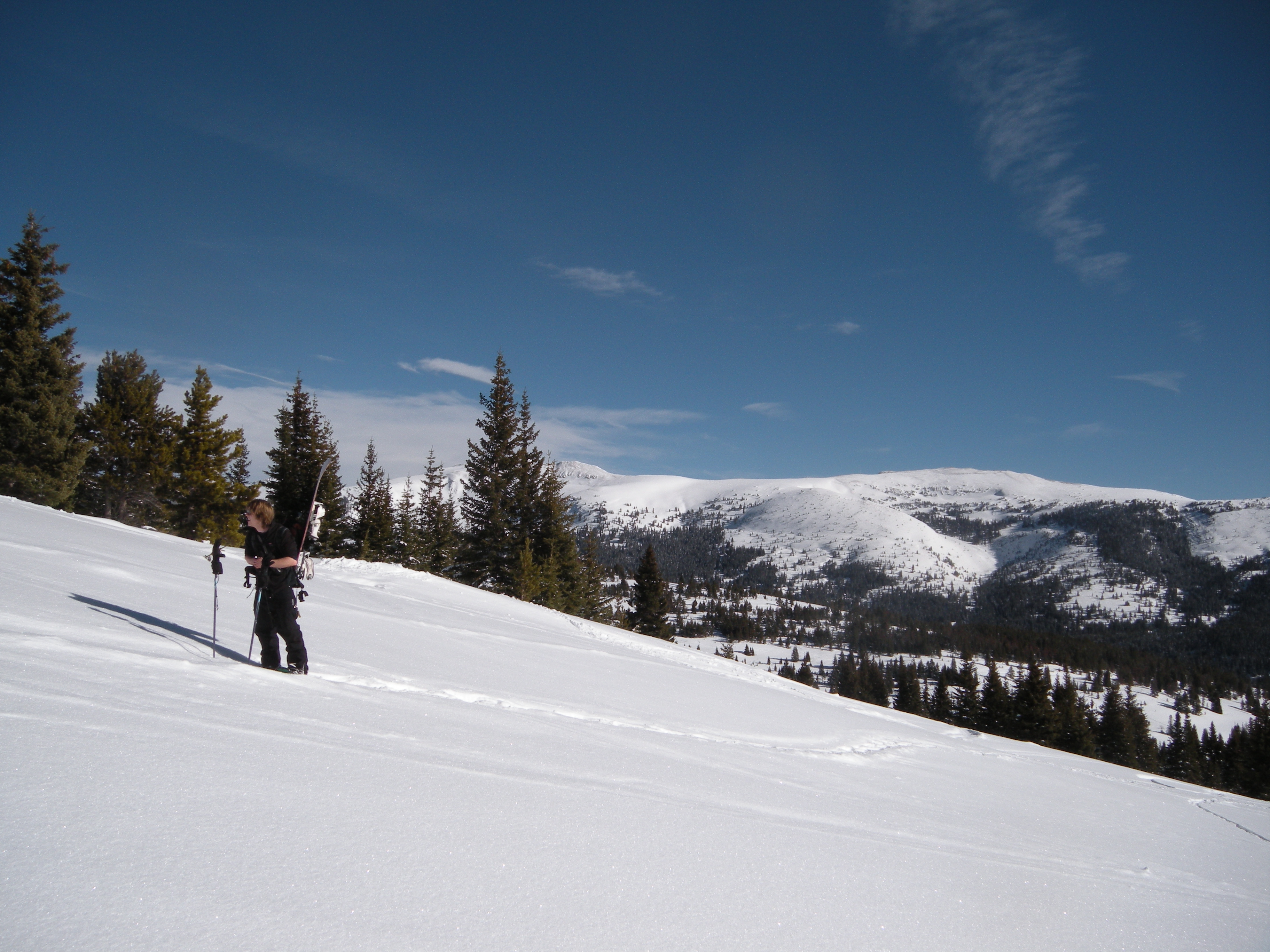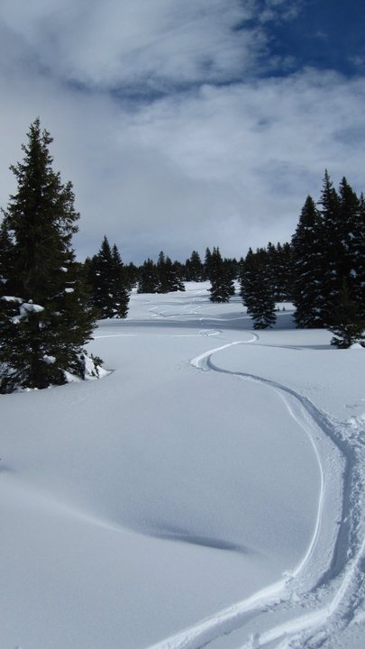Luckily, before he heads to California to visit his brother before the Peace Corps, we were able to hike up from Vail Pass, where we avoided getting run-over by snowmobiles, caught up on life, and had two great runs on the backside of Shrine Mountain.