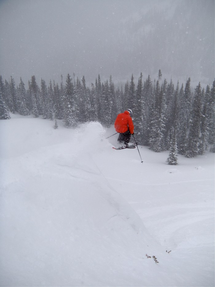 For the most part, I have been skiing by my lonesome for one reason or another at A-Basin. Since I am without any mounts or cases for my helmet camera, I cannot document some of the lines I have been getting after. Also, skiing alone was also been a source of frustration for me, and it got to the point where I created a unpublished blog post with a survey entitled “Why Don’t You Ski with Jon Jay Anymore?” (Some of the better answers included “Because I only ski A-Basin when nothing else is open,” “Because I have two dates in Breck at the same time and gotta juggle that somehow,” and “I don’t even know the guy. I thought I was shopping at www.pharnorth.com?”) Luckily, three out of the last four times I have been up, I have had great crews to ski with. Plus, that one time I didn’t ski with anyone, I got to hit a drop with freeski legend Chris Tatsuno. Those four days cheered me up enough to not publish that survey, and probably prevented me from making most of my good friends (and certainly my favorite people to ski with) very angry with me (another one of the answers on the survey: “Because Jon Jay is an asshole”).