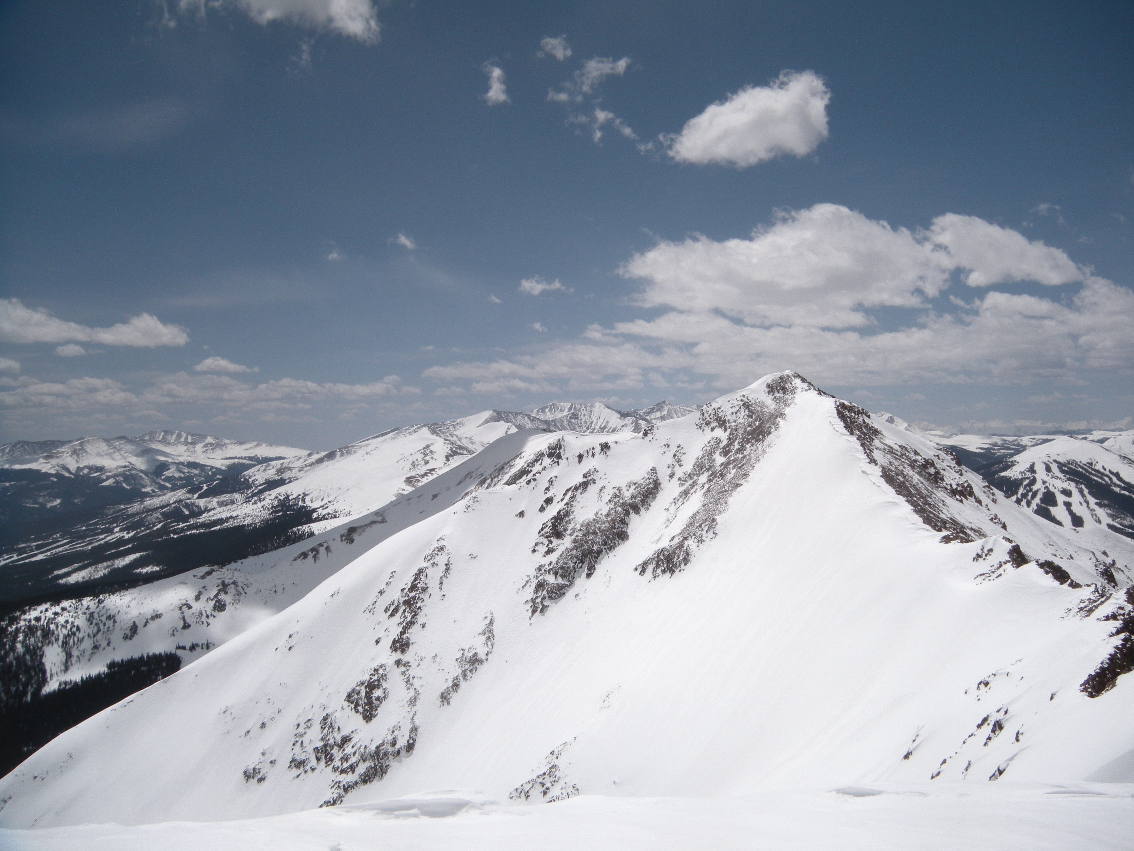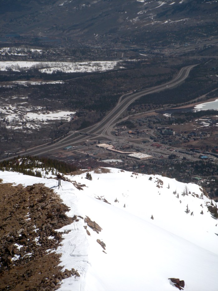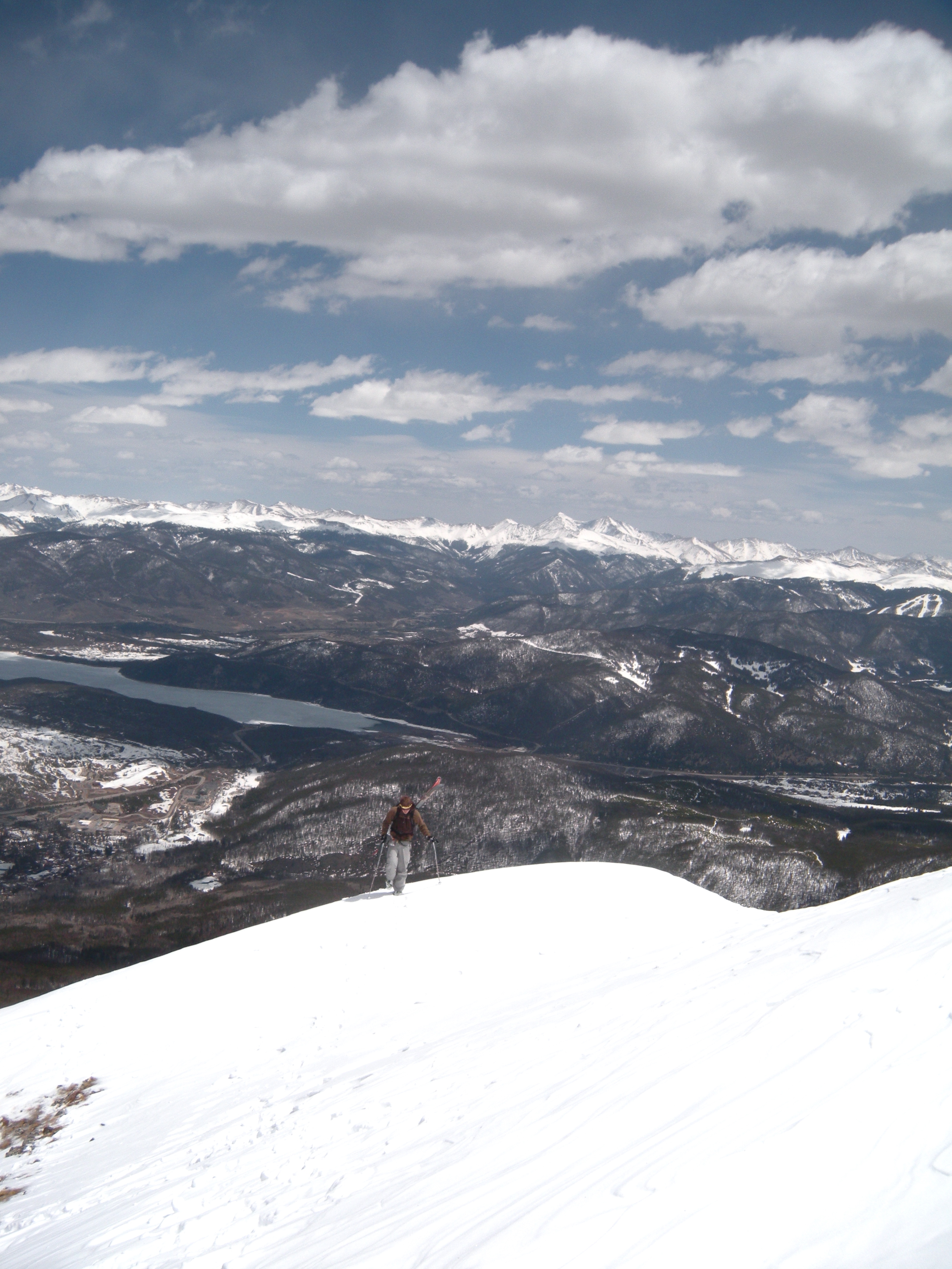 We toured up the lift line of the former Peak 1 ski area that rises abruptly out of Frisco. It became apparent that Chris hadn’t skied for a while, let alone toured, but we pushed on. Before long, we found ourselves on the ridge from the top of the lift line to the summit. It had to be one of the most beautiful climbs I have ever done.