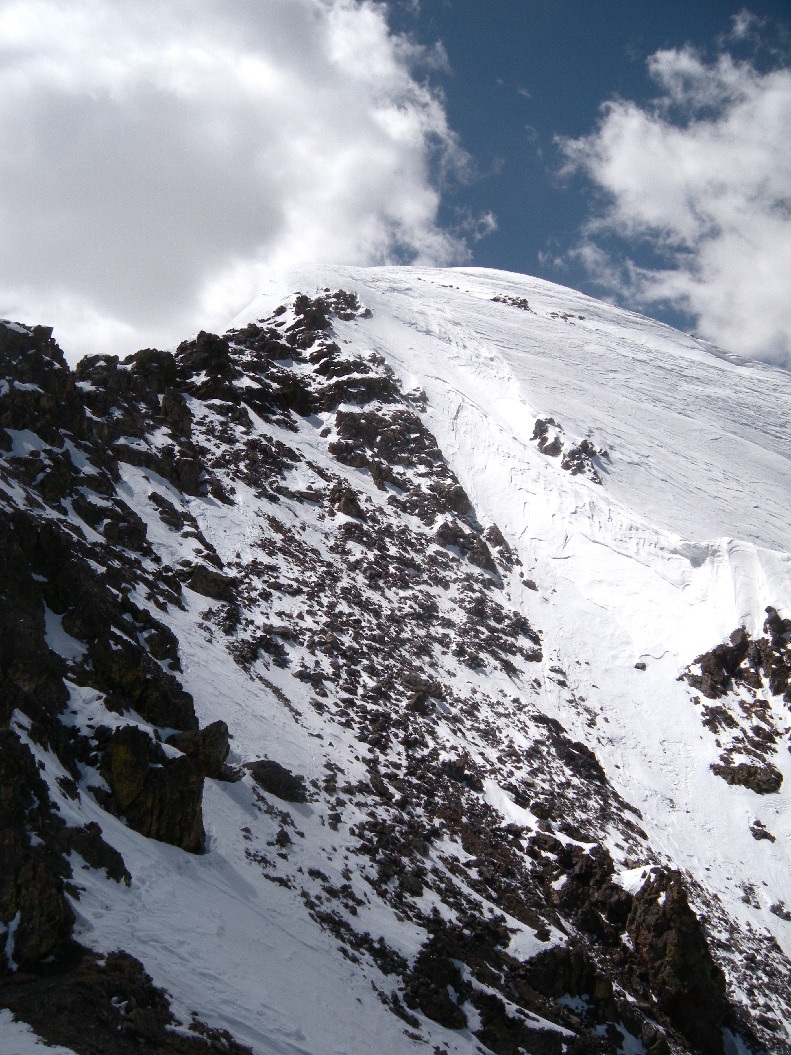 The final pitch was the perfect juxtaposition of the ridge climb: a loose scree scramble and about 75 feet of steep, punchy snow on a steep face. A fall at any point during the climb would be bad, but these two sections upped the ante a bit.