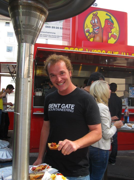The first bite was similar to when you get a little too much wasabi on your sushi, with a rush of pins and needles to the nostrils. I tried to tell Julia “It’s spicy, but not too bad,” but every time I got to “spicy,” I hiccuped (two bites later the hiccups subsided). I got almost all of the sausage down, but the last bite slipped off the miniature plastic fork and onto the ground. Julia was in awe and only slightly disappointed about the last bite, but also pretty stoked I got most of it down. I got some funny looks from her friends in Mainz when I was introduced as “Jon, who studied abroad with Julia in Sweden, and had level F at Best Worscht in Town.”