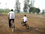 After getting a fill of photos, we headed back into Ngawi town for a couple of laps around the park’s track and some breakfast. Somewhere along the way we lost the kids who followed us around, but not before I was able to snap one last shot of John having a conversation mid-ride.