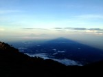Gunung Lawu is a mountain that straddles the border between East and Central Java. It rises to 3265 meters, or 10,712 feet. It is a lone peak, far from any summit nearby. So, once the light got bright enough to the east, we turned around and saw the largest mountain shadow I have ever seen. We hiked out a bit on the west flank to try to get the best angles of it, and were not disappointed.